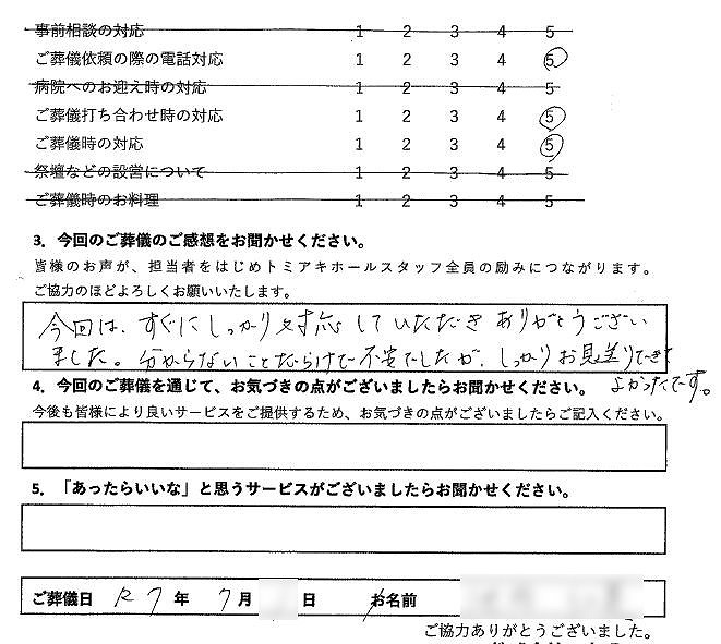 とても良くしていただきました。 ありがとうございました。 2015年8月長野市のトミアキホール篠ノ井にて家族葬施行K様